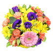 Welcome the magic of spring with our exquisitely designed bouquet. Featuring a brilliant combination of pink and yellow gerberas, enchanting orange carnations, and delicate purple lisianthus adorned with fresh greenery, this arrangement is a celebration of color and life. Every flower is hand-picked with care to ensure lasting freshness.